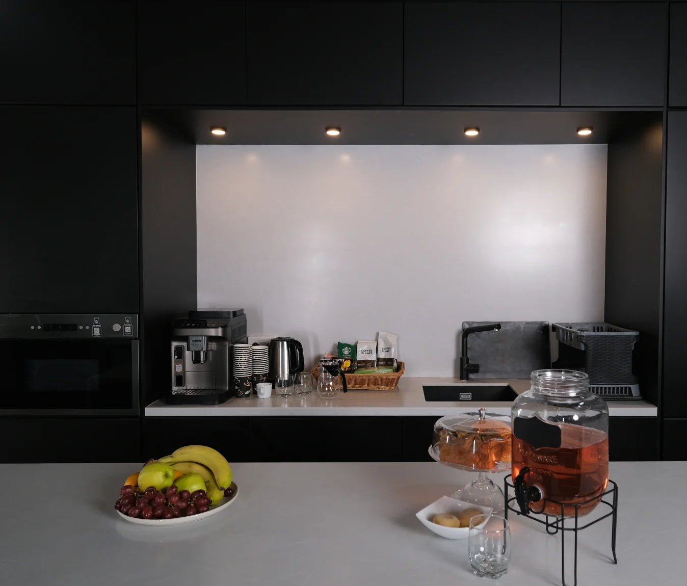 The GreySea studio space of 650 m² combines a spacious main hall and an auxiliary area equipped. For comfortable work, there is a bathroom, one dressing room, a makeup room with three workstations, a kitchen area and a shower.