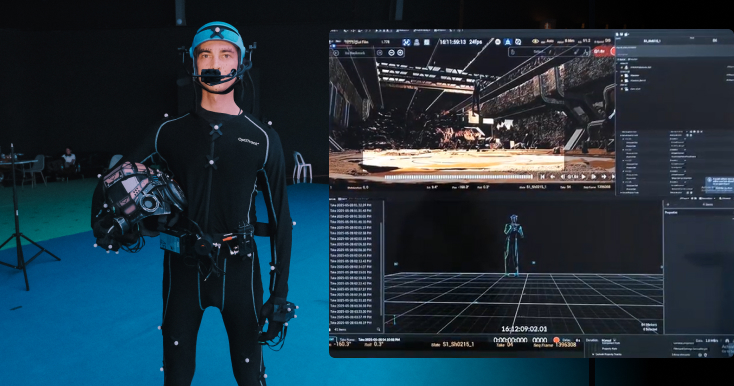 Cinematic-quality body, face, and hand motion capture using professional tracking systems for animation, VFX, and virtual production.